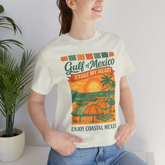 A retro travel tee for coastal dreamers, cultural romantics, and salty rebels at heart. Inspired by the vibrant soul of coastal Mexico, this soft cotton tee blends vintage travel poster vibes with hand-drawn cultural details- palm trees, fishing boats, and papel picado dancing across a coral sunset. It’s a quiet celebration of joy, identity, and place.